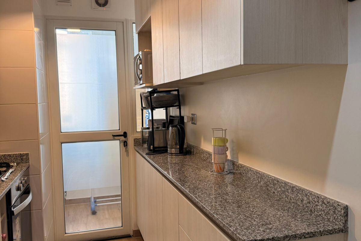 Cocina Independiente: Cocina cerrada, completamente equipada con muebles de almacenamiento y logia/área de servicio.