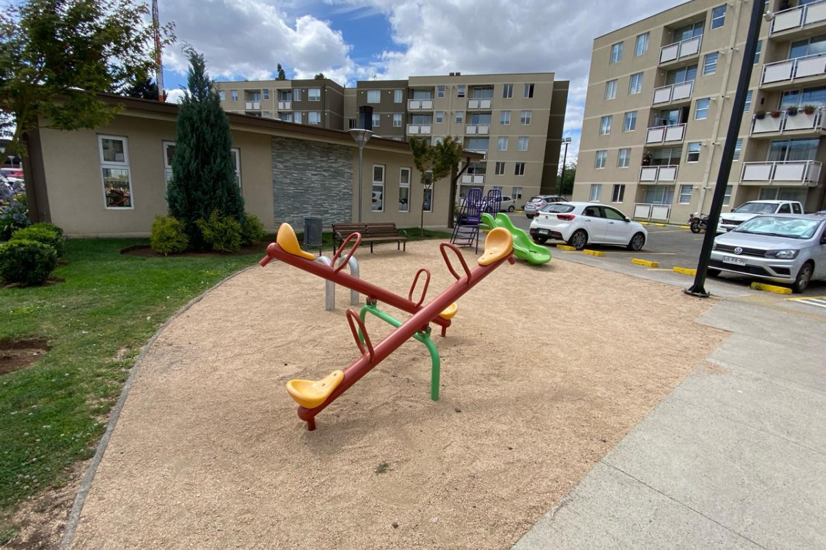 El condominio ofrece excelentes áreas comunes, incluyendo piscina exterior y quincho, además de conserjería y seguridad controlada.