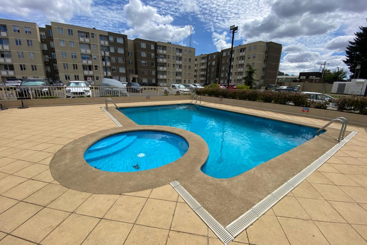 El condominio ofrece excelentes áreas comunes, incluyendo piscina exterior y quincho, además de conserjería y seguridad controlada.