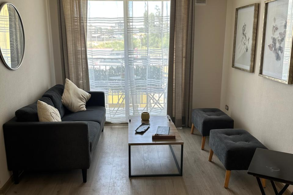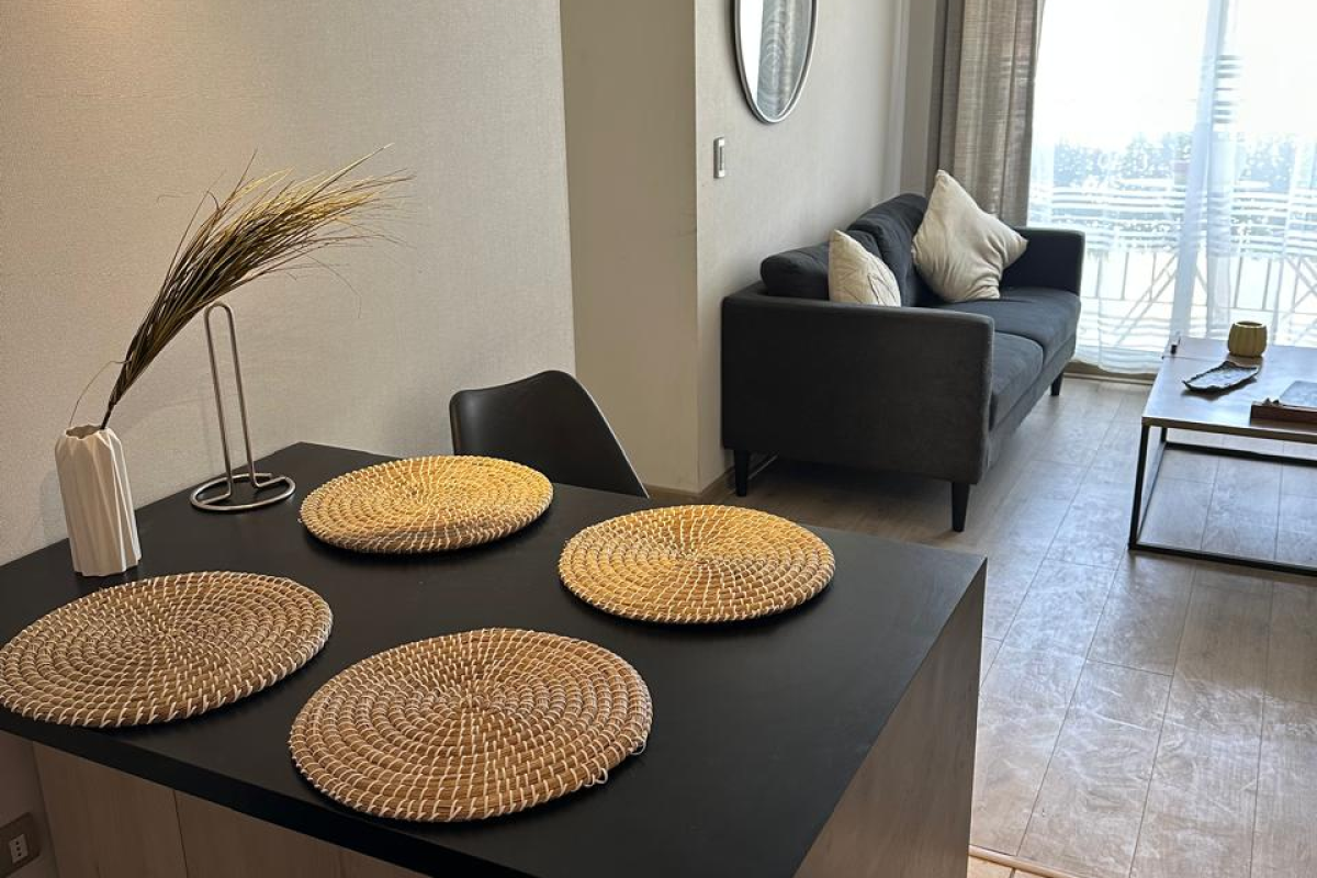 Excelente departamento amoblado y full equipado en arriendo en Fundo El Carmen, sector residencial tranquilo, seguro y comercio cercano.